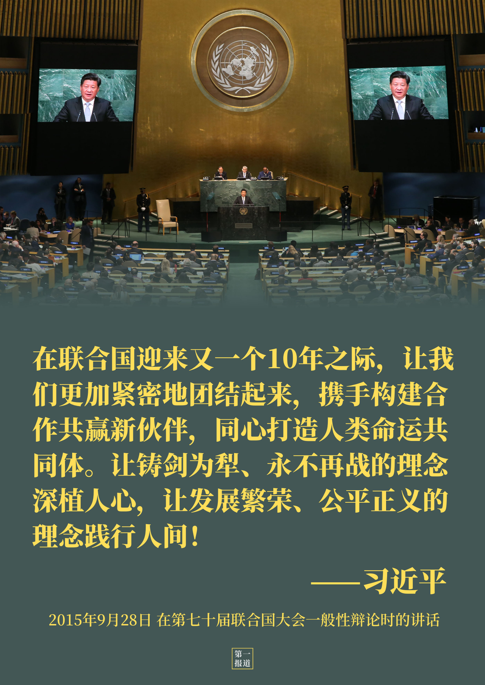 “第一報道”選取其中3個鏡頭,帶您重溫5年前習(xí)主席的“聯(lián)合國時間”——