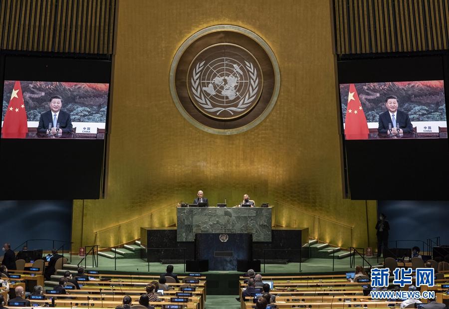 9月22日,國(guó)家主席習(xí)近平在第七十五屆聯(lián)合國(guó)大會(huì)一般性辯論上發(fā)表重要講話。新華社記者 鞠鵬 攝