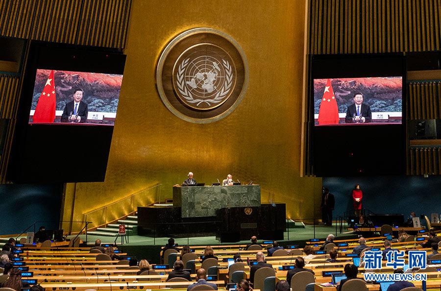 9月30日,國(guó)家主席習(xí)近平在聯(lián)合國(guó)生物多樣性峰會(huì)上通過視頻發(fā)表重要講話。 新華社記者 鞠鵬 攝