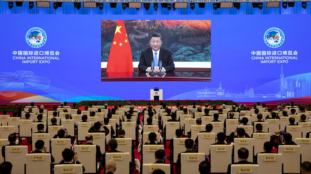 11月4日晚,習(xí)近平在第三屆中國國際進(jìn)口博覽會開幕式上以視頻方式發(fā)表主旨演講。新華社記者 黃敬文 攝