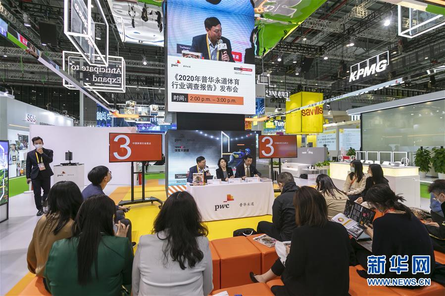 11月5日,普華永道在第三屆進(jìn)博會服務(wù)貿(mào)易展區(qū)現(xiàn)場直播《2020年普華永道體育行業(yè)調(diào)查報(bào)告》發(fā)布會。新華社記者 王翔 攝