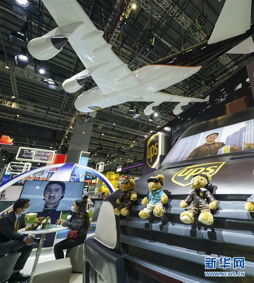 11月5日拍攝的第三屆進(jìn)博會服務(wù)貿(mào)易展區(qū)UPS展臺。新華社記者 張豪夫 攝