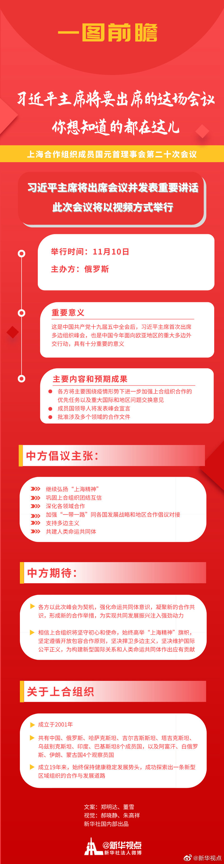 國家主席習近平將于11月10日在北京出席上海合作組織成員國元首理事會第二十次會議并發(fā)表重要講話。此次會議將以視頻方式舉行。習近平主席出席此次會議有何重要意義?請看下圖↓ ????