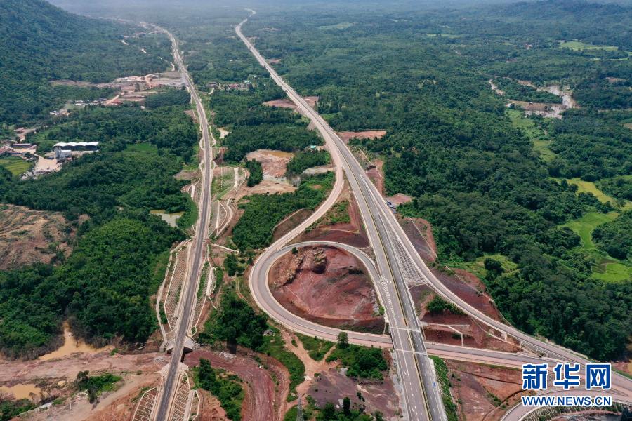 這是6月2日在老撾萬象省航拍的建設(shè)中的萬萬高速公路。(無人機拍攝)新華社發(fā)(云南建投集團供圖)