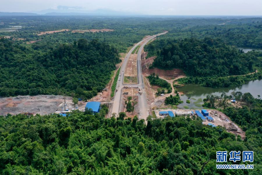 這是7月6日在老撾萬象省航拍的建設(shè)中的萬萬高速公路。(無人機拍攝)新華社發(fā)(云南建投集團供圖)