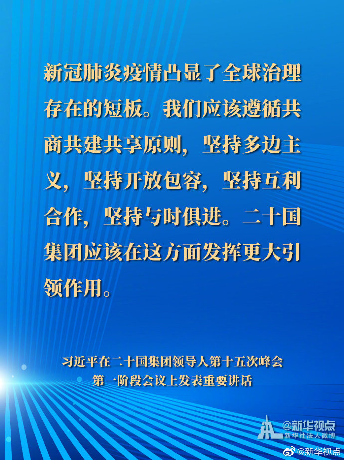 習(xí)近平在二十國集團(tuán)領(lǐng)導(dǎo)人第十五次峰會第一階段會議講話要點(diǎn)