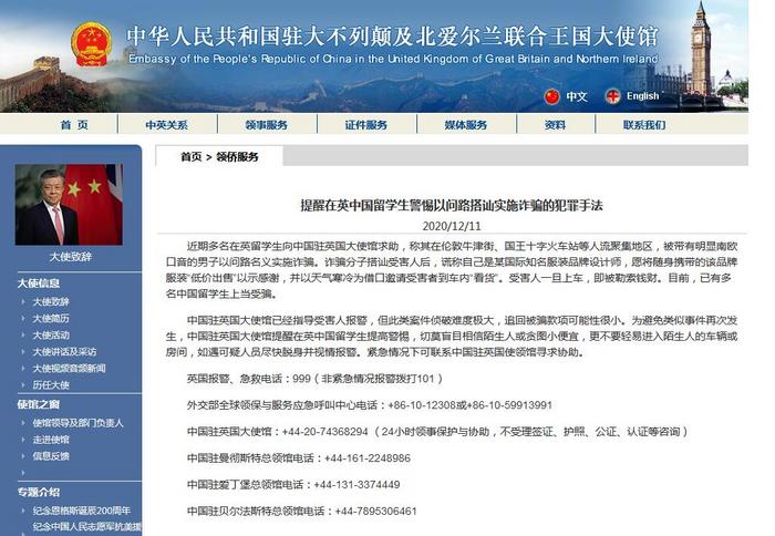 中國駐英國大使館已經(jīng)指導受害人報警,但此類案件偵破難度極大,追回被騙款項可能性很小。為避免類似事件再次發(fā)生,中國駐英國大使館提醒在英中國留學生提高警惕,切莫盲目相信陌生人或貪圖小便宜,更不要輕易進入陌生人的車輛或房間,如遇可疑人員盡快脫身并視情報警。緊急情況下可聯(lián)系中國駐英國使領館尋求協(xié)助。
