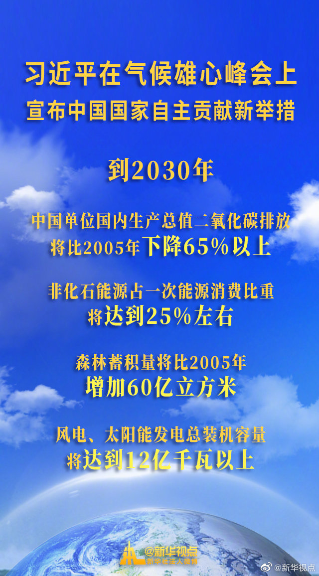 12月12日,國家主席習(xí)近平在氣候雄心峰會上宣布中國國家自主貢獻(xiàn)新舉措。 ??