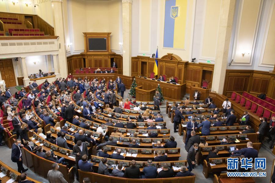 12月15日,在烏克蘭基輔,烏最高拉達(dá)(議會)召開會議討論頓巴斯地區(qū)特殊地位法延期。新華社發(fā)(亞歷山大·庫茲敏攝)