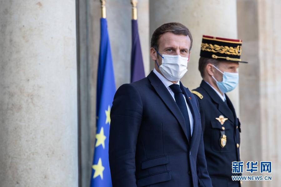 這是2020年11月12日,法國總統(tǒng)馬克龍在位于巴黎的總統(tǒng)府愛麗舍宮迎接前來參加巴黎和平論壇的嘉賓的資料照片。新華社發(fā)(奧雷利安·莫里薩爾攝)