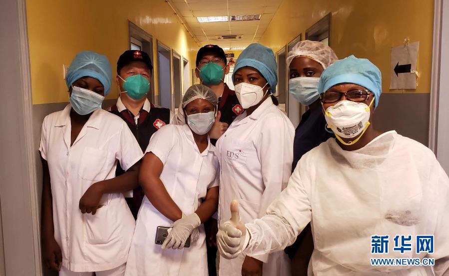 5月26日,中國(guó)抗疫醫(yī)療專家組在剛果(布)首都布拉柴維爾指導(dǎo)新冠肺炎病房建設(shè)時(shí),與當(dāng)?shù)匾痪€醫(yī)務(wù)人員合影。新華社發(fā)