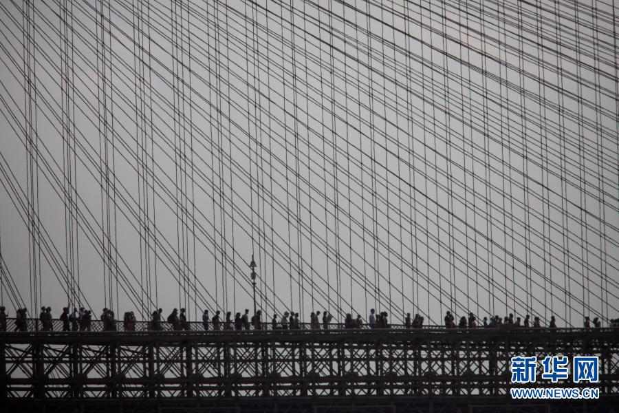 6月6日,抗議警察暴力執(zhí)法導(dǎo)致喬治·弗洛伊德死亡的示威人群走過(guò)美國(guó)紐約布魯克林大橋。新華社發(fā)(郭克攝)