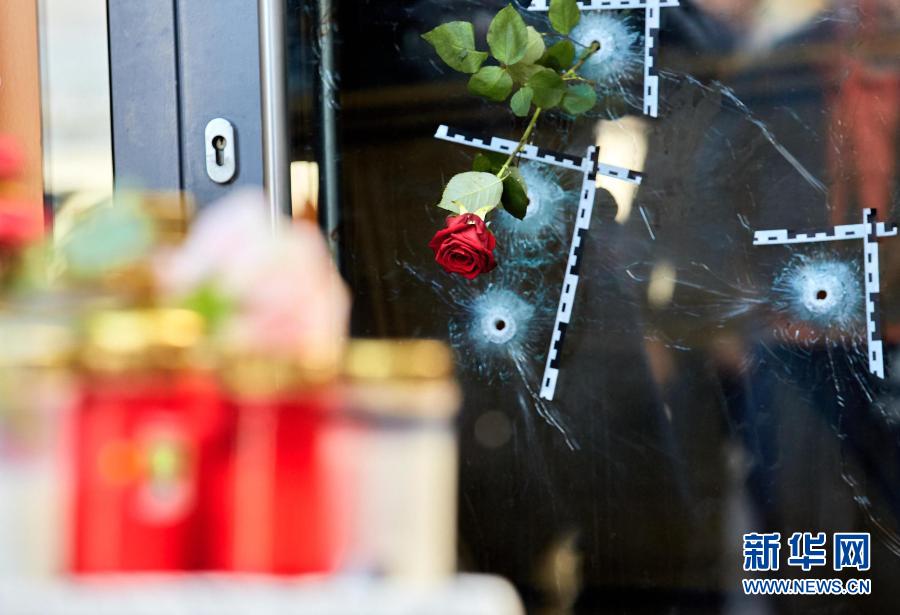 11月5日,奧地利維也納的槍擊事件現(xiàn)場(chǎng)放置著悼念遇難者的鮮花和蠟燭。2日晚發(fā)生的槍擊事件造成多人傷亡。奧總理庫(kù)爾茨譴責(zé)這起事件是“卑劣的恐怖襲擊”。新華社發(fā)(喬治斯·施耐德攝)