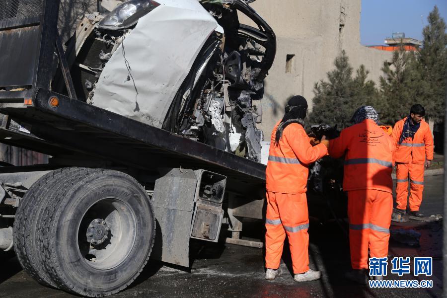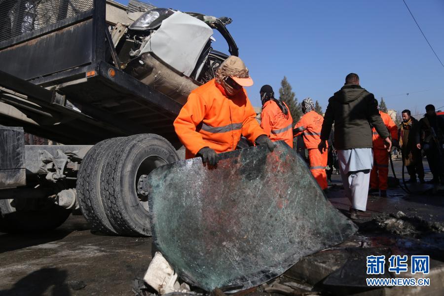 12月22日,在阿富汗首都喀布爾,工作人員清理爆炸現(xiàn)場(chǎng)。新華社發(fā)(賽義德攝)