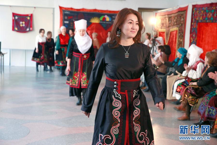 當日,吉爾吉斯斯坦首都比什凱克的國家美術館內(nèi)舉行傳統(tǒng)手工藝品比賽,其中裙袍大賽引人關注。裙袍是吉爾吉斯族的傳統(tǒng)服飾,它看起來像一條擺裙,一般穿在連衣裙或背心外面。裙袍的剪裁、顏色和圖案能夠反映女性的地位和狀況。