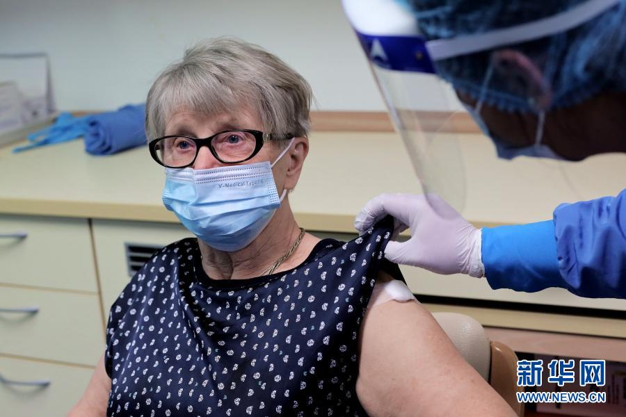 12月27日,在斯洛文尼亞首都盧布爾雅那一家養(yǎng)老院,醫(yī)務人員為一名志愿者老人注射新冠疫苗。