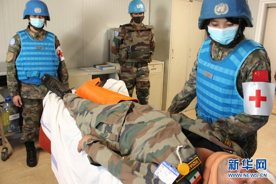 12月29日,中國第19批赴黎巴嫩維和部隊醫(yī)療分隊隊員參加代號為“東區(qū)天使2020-Ⅲ”的協(xié)同應(yīng)急醫(yī)療救援演練時為“傷員”進(jìn)行檢查。新華社發(fā)(雷洋攝)