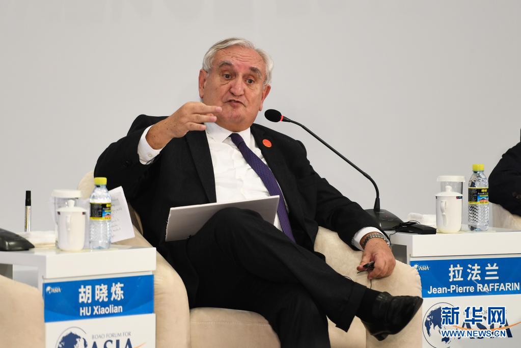 法國前總理拉法蘭在博鰲亞洲論壇2018年年會(huì)“改革開放40年:中國與世界”電視辯論上發(fā)言(2018年4月10日攝)。新華社記者 楊冠宇 攝