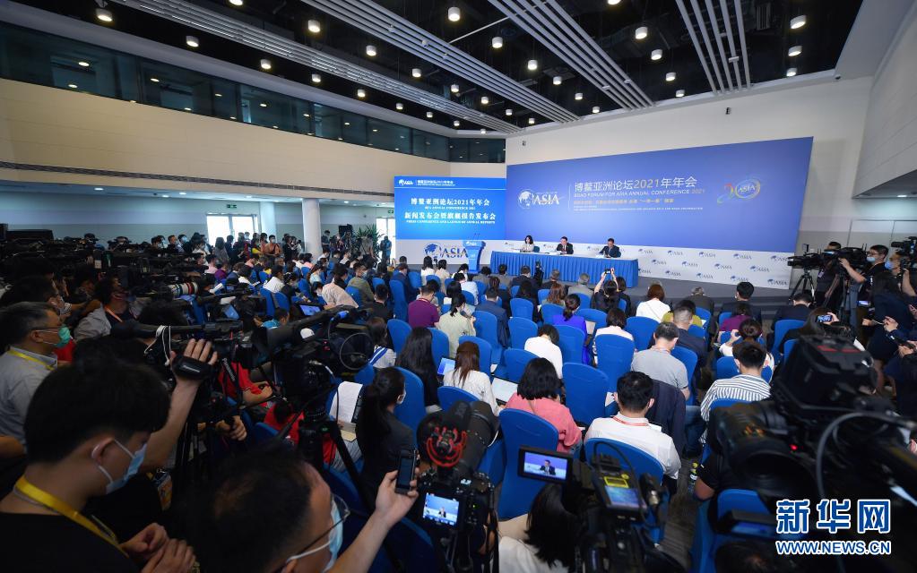 這是博鰲亞洲論壇2021年年會(huì)新聞發(fā)布會(huì)現(xiàn)場(4月18日攝)。新華社記者 郭程 攝