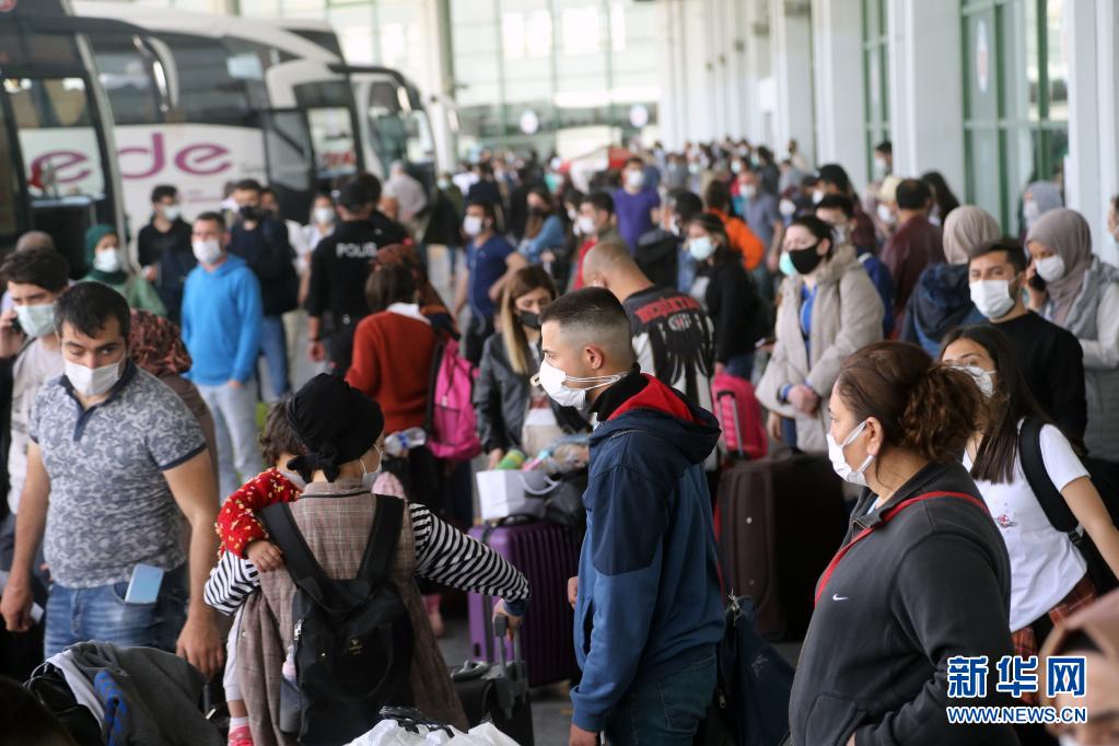 4月29日禁令實(shí)施前,人們聚集在土耳其安卡拉汽車站準(zhǔn)備出行。