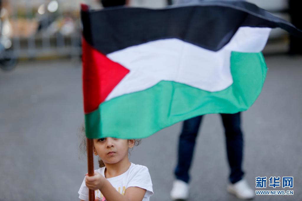 5月15日,一名兒童在黎巴嫩首都貝魯特參加抗議示威活動(dòng),聲援巴勒斯坦民眾。