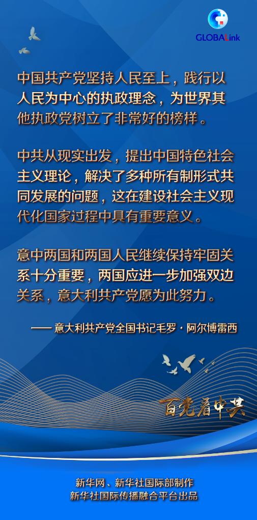 阿爾博雷西說,一百年來,中國共產(chǎn)黨帶領(lǐng)中國人民取得了巨大成就。中共積累的經(jīng)驗是國際共產(chǎn)主義運動史上的亮點,中共在國際共運歷史上樹立了重要標桿。