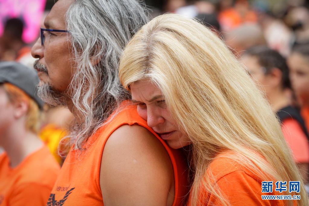 當(dāng)天是加拿大日,上千名抗議者在溫哥華集會(huì),悼念加拿大在強(qiáng)制“同化”原住民過程中遭到殘害的兒童,呼吁取消加拿大日的慶?;顒?dòng)。