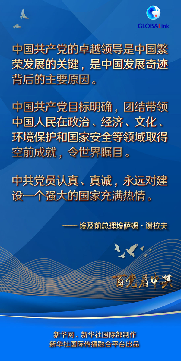新華社開羅7月2日電 埃及前總理埃薩姆·謝拉夫日前在開羅通過視頻方式接受新華社記者專訪時表示,中國共產黨的卓越領導是中國繁榮發(fā)展的關鍵,是“中國發(fā)展奇跡背后的主要原因”。